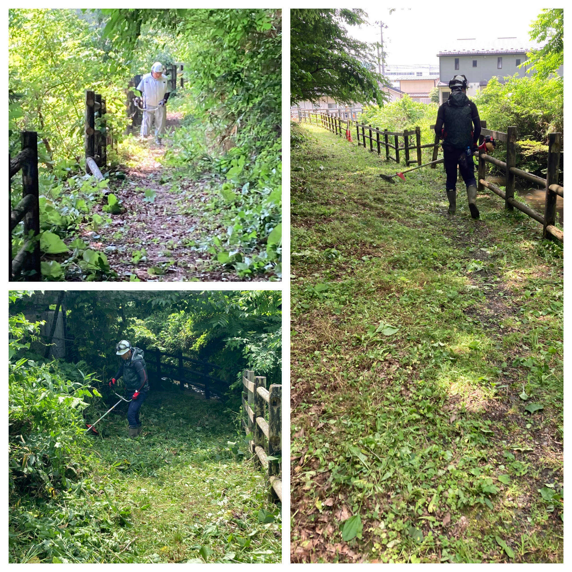 6月19日、北上地区土木C級会様主催のアドプト活動に弊社から2名の社員が参加しました。毎年恒例のこの活動では、新堰東水辺公園の草刈りを行いました。