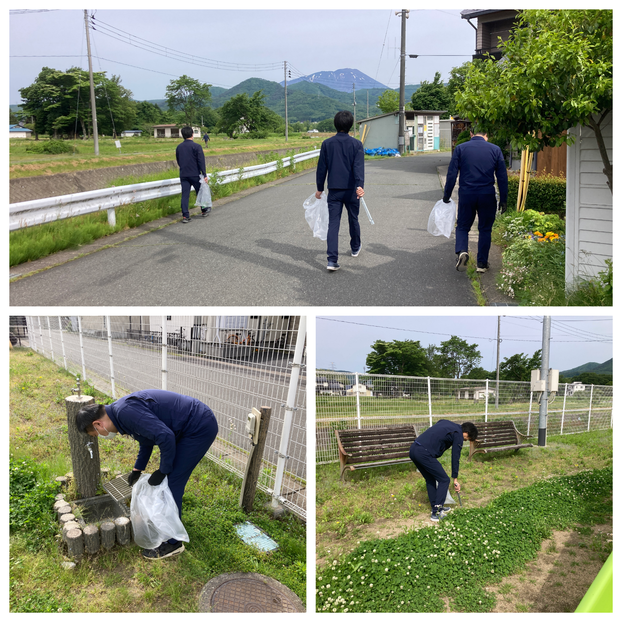 盛岡営業所は駐車場裏通りの市道と近隣公園の清掃を行いました。