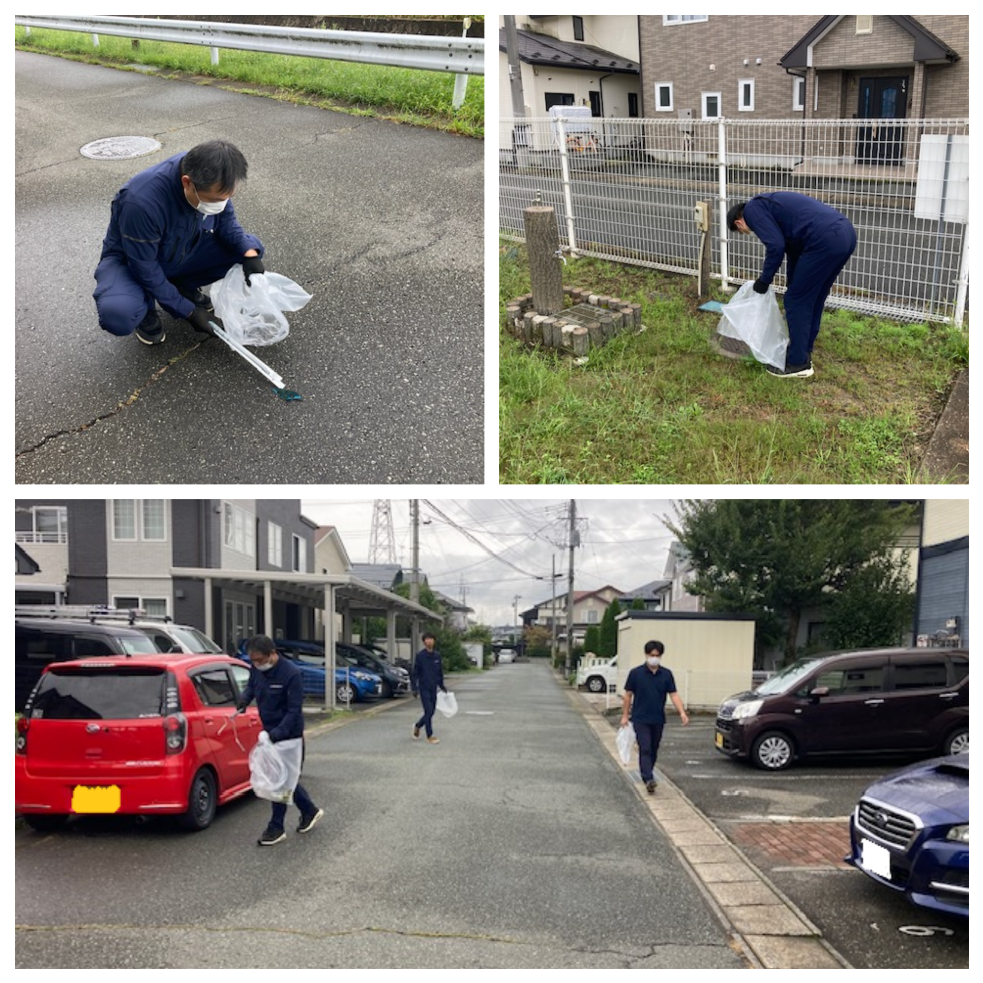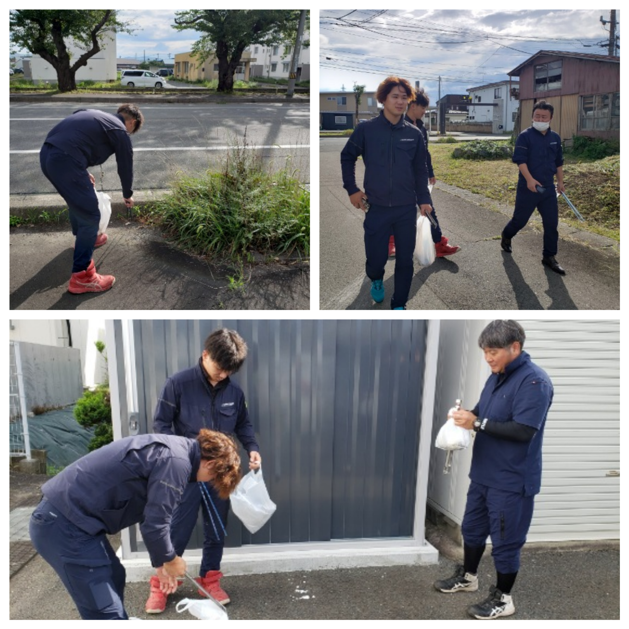 始業前の時間に社員が3班に分かれ、会社周辺の常盤台4丁目地内約1kmのごみ拾いを行いました。